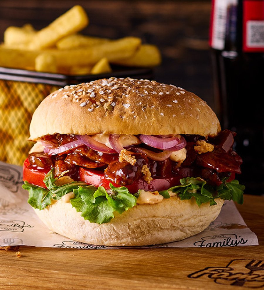 Geniet van heerlijke herfst specials bij Family. Dit seizoen hebben we weer nieuwe gerechten voor jullie in petto. Een heerlijke Brioche Ribfingers met sla, ui, tomaat, krokante uitjes en creamy bacon style saus.